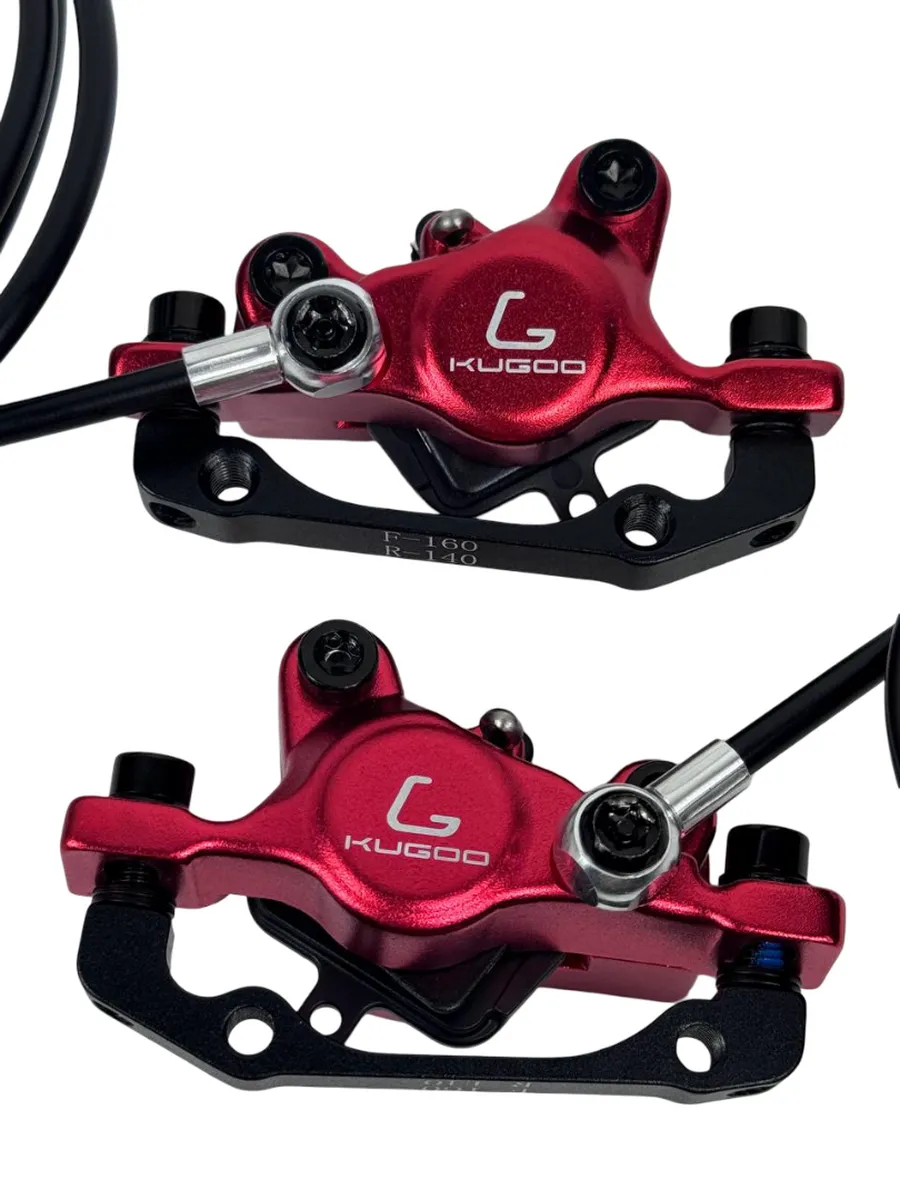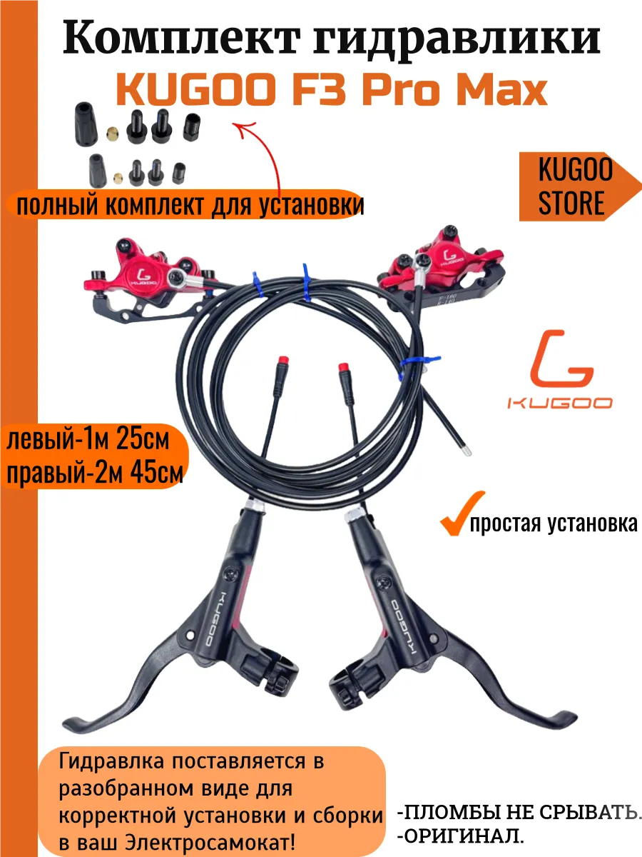 Гидравлическая тормозная система Данный комплект состоит из суппортов, в которых гидролиния выходит направо (в одном суппорте) и налево (в другом суппорте). Обратите внимание: в теории данный комплект тормозов совместим с перечисленными ниже моделями самокатов, однако из-за возможных конструктивных особенностей конкретного самоката (например, креплений, длины гидролиний, формы вилки и пр.) могут возникнуть трудности при установке. Рекомендуем при покупке учитывать эти нюансы или проконсультироваться с мастером.
