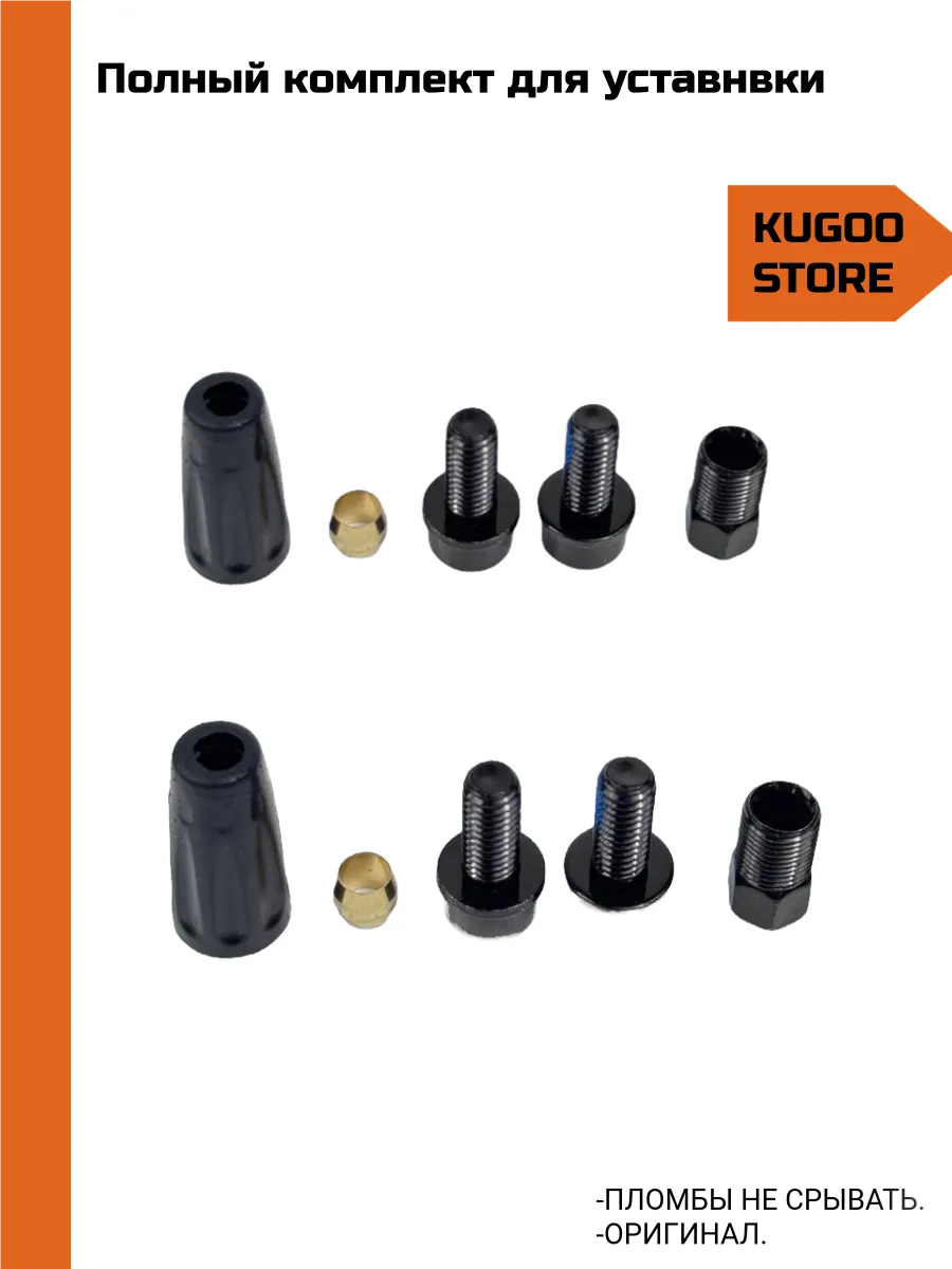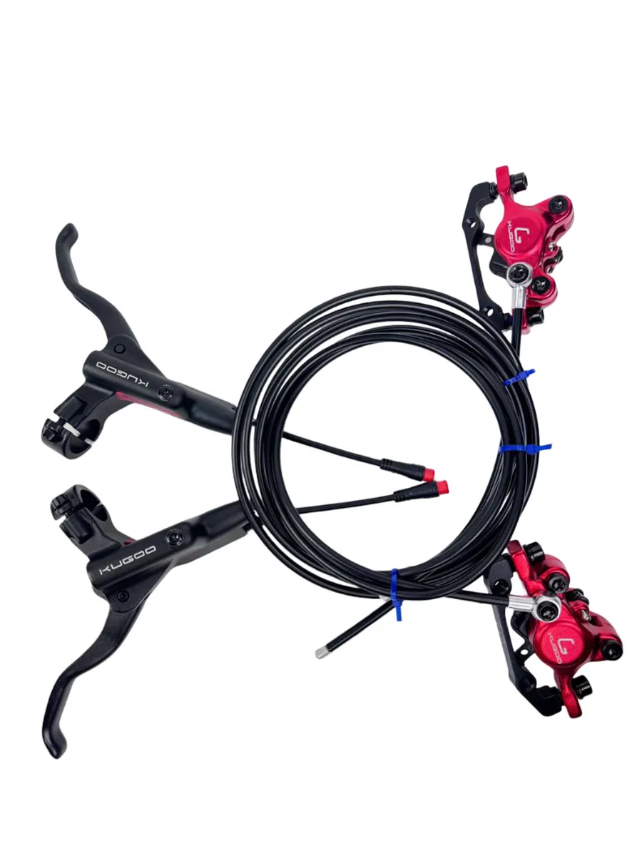 В комплект входит: Задний калипер с гидролинией. Передний калипер с гидролинией. Левая ручка тормоза. Правая ручка тормоза. Запчасти для установки.